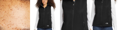 - Contrast, raised, high-definition The North Face logos at left chest and right back shoulder