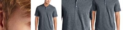 - Three-button placket with dyed-to-match buttons