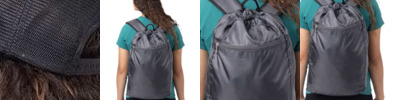 - Roll top closure with adjustable straps and slide release plastic fasteners
