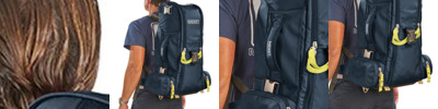 - Hideaway backpack strap harness system easily distributes weight for maximum comfort